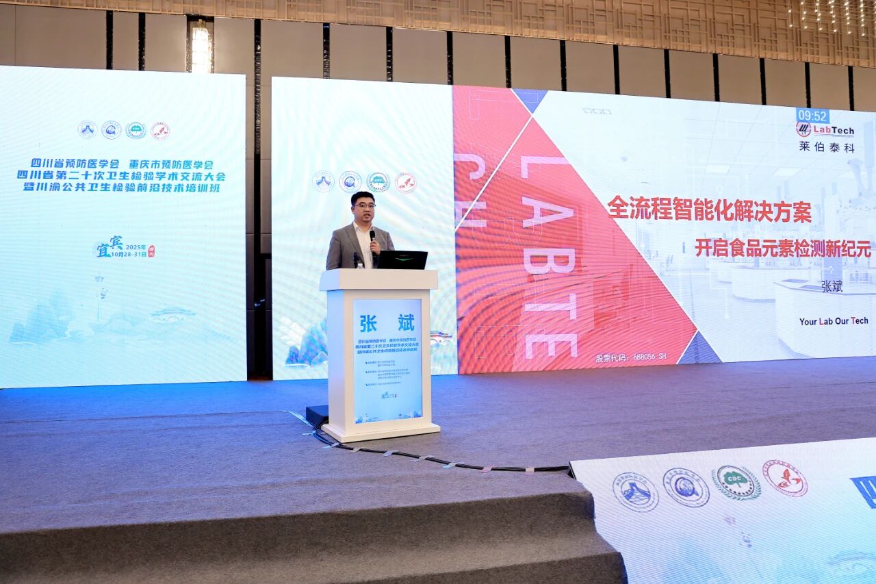 会议期间,九州官方网站携两款核心产品亮相技术展区,并由销售经理张斌先生作《全流程智能化解决方案,开启食品元素检测新纪元》主题报告。报告重点介绍了公司针对卫生检验场景开发的自动化设备如何优化实验流程、降低人为误差。