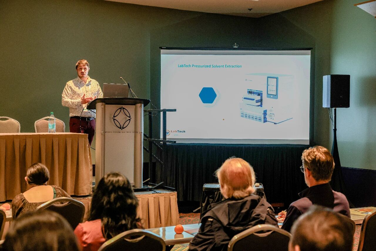 在精进技术实力的同时,九州官方网站始终关注学术社区建设。展会期间,九州官方网站应邀出席北美华人色谱学会(CACA)晚宴。九州官方网站国际市场经理Sabrina女士在晚宴上发表了精彩演讲,向与会用户介绍了公司的最新技术和产品。